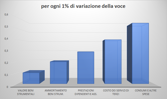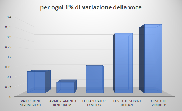Significa, ad esempio, che se il valore dei beni strumentali supera del 10% la media di quello dichiarato da altri colleghi simili a te, l'aspettativa di reddito nel tuo caso salira' solo dell'1% (0,1 x 10).