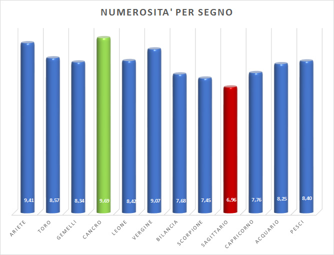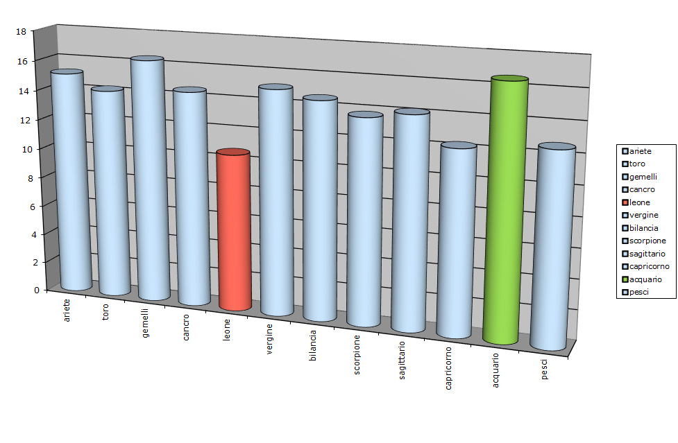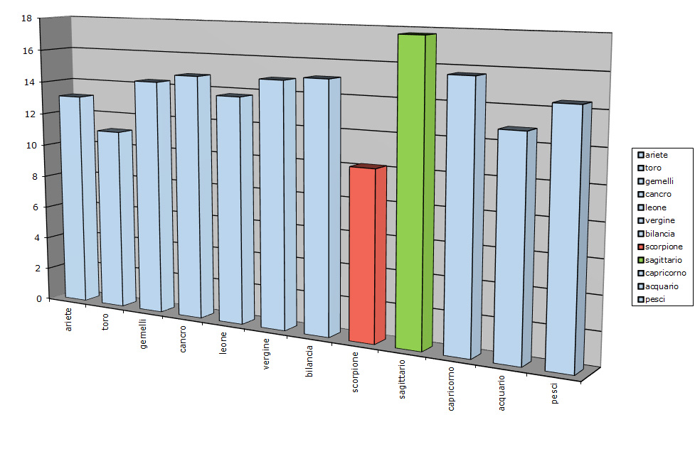 Un primo curioso dato e' la distribuzione statistica nei diversi segni zodiacali.